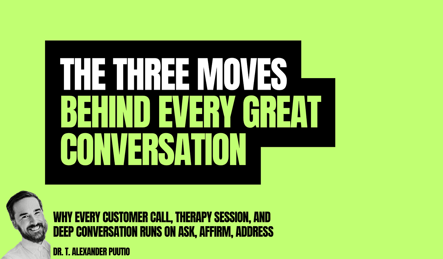 How every customer call, therapy session, and deep conversation runs on Ask, Affirm, Address (or at least should)